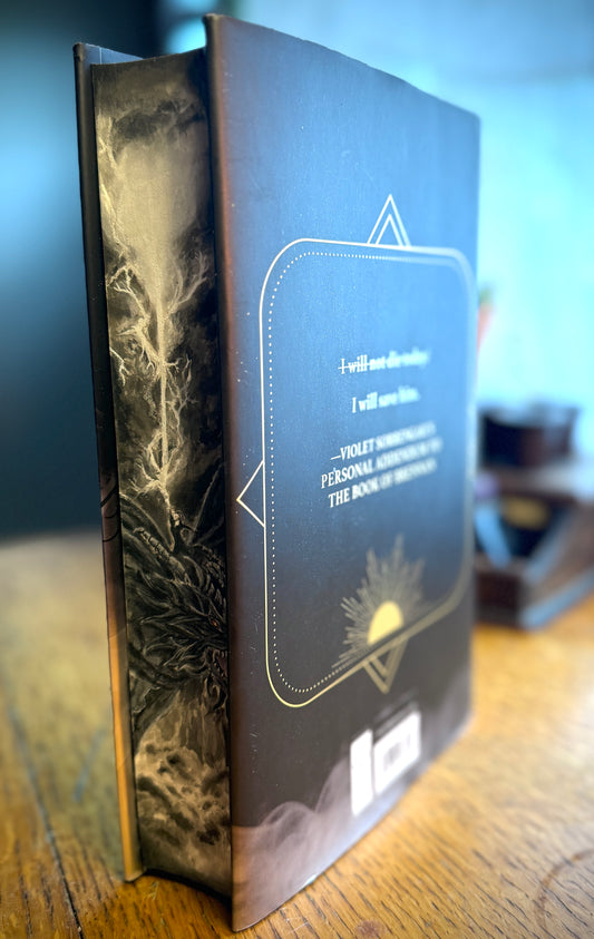Words cannot even describe how in love with this I am! This is leagues above any other sprayed or painted edge I've seen, Abigail is just insanely talented. It's almost too incredible to be on a book. Abigail made some adjustments to the design on the top edge for me without even charging - I'm so so grateful! It's everything I could have ever imagined, and to have such special personal words added for free was amazing. Please do Fourth Wing and Iron Flame next!!