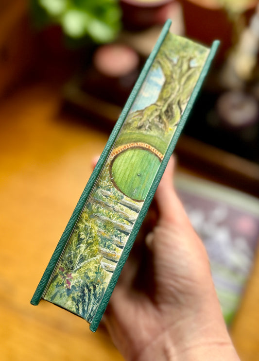 This looks even better in person. I have an embarrassing number of editions of The Hobbit, including sprayed edges, and this is by FAR my new favourite. Hard to believe it's even real. The painting is so pretty and the colours are so vivid it's hard to even believe the pages turn but you can't even feel the paint. Truly magical.